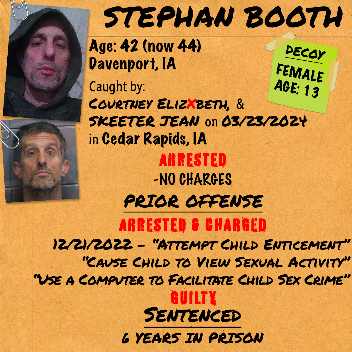 After catching Stephan in 2024, I was sad to see he had NO CHARGES, even after I watched him get arrested in our sting house. HOWEVER, 2 years later, I'm now realizing he had even more reason to be charged that day. As it turns out, he was already awaiting trail for a pending case in Wisconsin for getting caught in a very similar child predator sting operation! It's not clear if any evidence from our catch was used against Stephan in his Wisconsin trial, but I'm happy to announce he was found GUILTY on all counts and will be in prison until 2030.