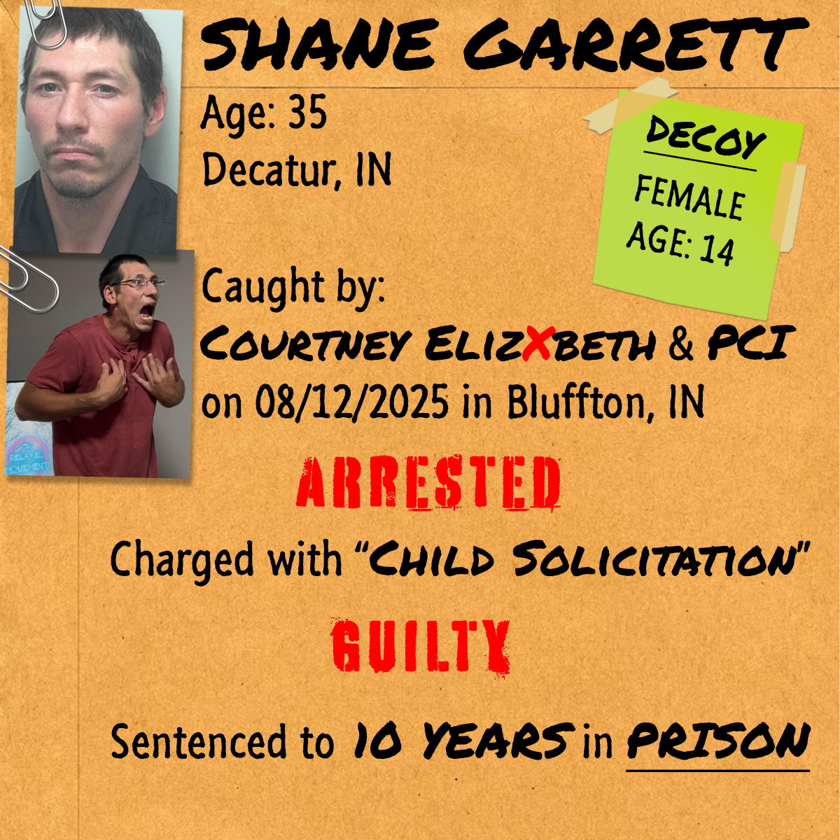 Shane has been sentenced to 10 YEARS in PRISON. It's only been 4 months since PCI and I caught him in Bluffton, IN, and it's usually not this quickly that we see results like this. However, Shane requested a speedy jury trial, which we testified in as witnesses last month. The jury found him guilty and his sentencing took place just a couple days ago.
